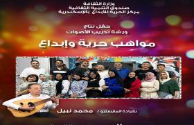 حفل مواهب إبداع، نتاج ورشه تدريب الأصوات " كورال موسيقى عربية " بقيادة المايسترو محمد نبيل ، الساعه ٧،٣٠ مساءا- مقابل تذكرة دخول بقيمه ٦٠ جنيه .